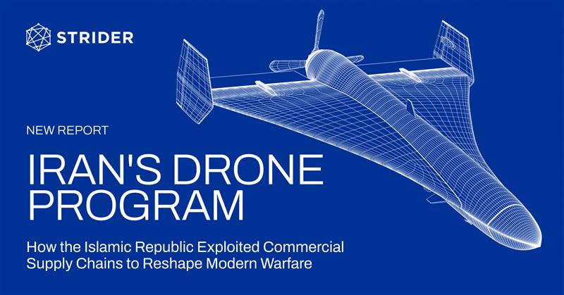 Strider's latest report—Iran's Drone Program: How the Islamic Republic Exploited Commercial Supply Chains to Reshape Modern Warfare—provides a detailed analysis of how Iranian entities leverage front companies, intermediaries, and dual-use technologies sourced from international markets to maintain drone production and distribution.